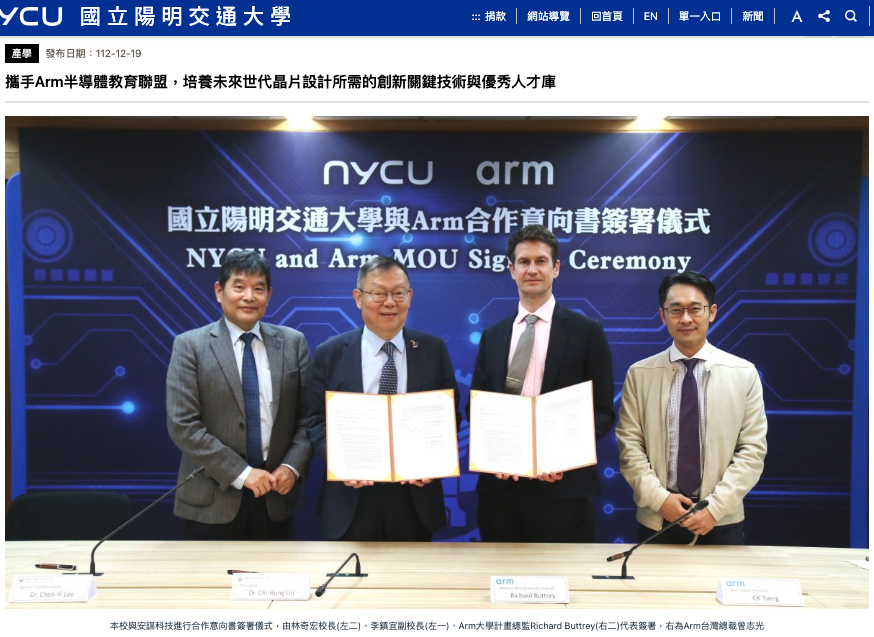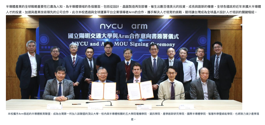 陽明交通大学とアームが協力し、世界のチップ設計人材のための重要な拠点を設立