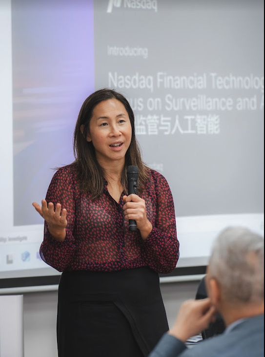 ナスダック・アジア太平洋地区バイスプレジデントのイー・リン・チェン氏とマーケット・サーベイランス・スペシャリストのジュン・イー・ゴー氏が講演し、ナスダックのサーベイランス・テクノロジーとAIアプリケーションの経験を紹介した。